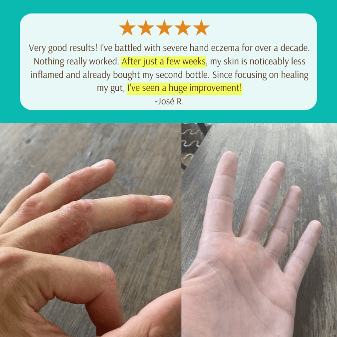 Studies show that people with eczema often have disrupted gut microbiota and increased inflammation. Since over 70% of your immune cells live in your gut, it makes sense: to calm eczema, you need to start within.